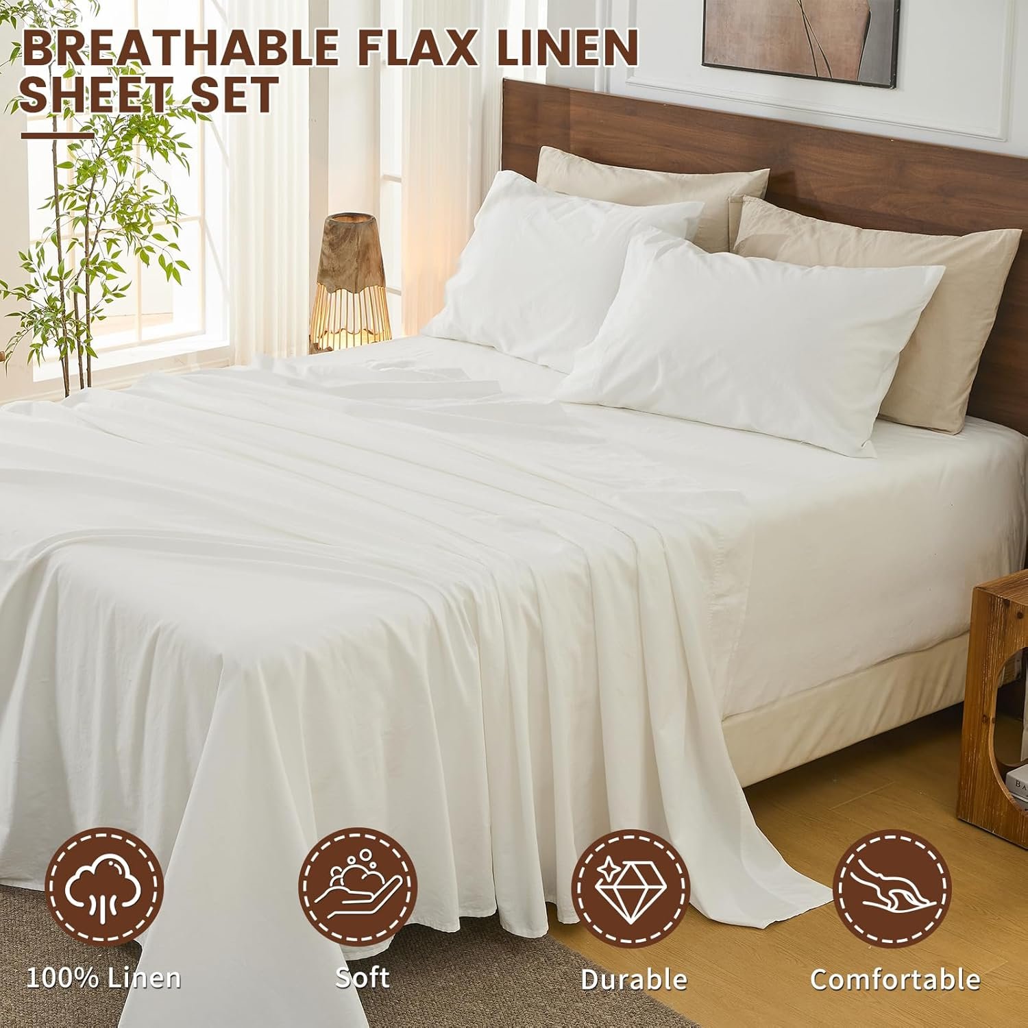 - 100% Pure French Linen:these breathable sheets deliver instant cooling comfort with natural thermoregulation.The textured fabric becomes luxuriously soft and supple after washes, blending seamlessly into minimalist décor. Ideal for hot sleepers and sensitive skin, offering hotel-quality luxury for everyday use.