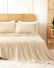 - LONG LASTING & EASY CARE: You can machine wash our beige queen size bed sheets set at a gentle cycle setting for a like-new restoration.Our queen bedding sheet set deep are durable, not fade.Please do not use bleach and fabric softener.Tumble dry low,wash with like colors only.Do not Bleach.Warm Tips: Bedding sheet set woven by gauze,please be careful your pets claw or teeth
